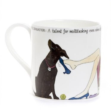 A beautiful bone china Tottering by Gently Mug, The Femal Character: A talent for multitasking even when at rest.